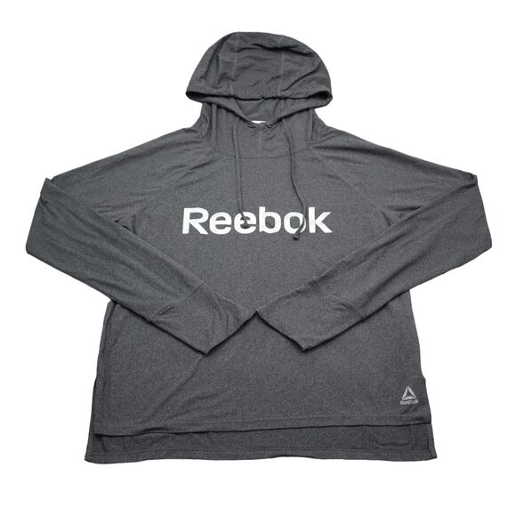 Rebook Sweatshirt Womens S Gray Long Sleeve Drawstring Logo Pullover Hoodie