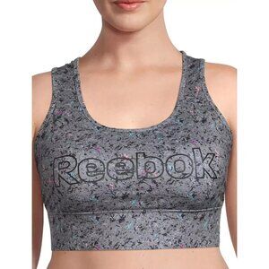 Rebook Women's Medium Support Sports Bra Active Gym Gray Removeable Pads NEW