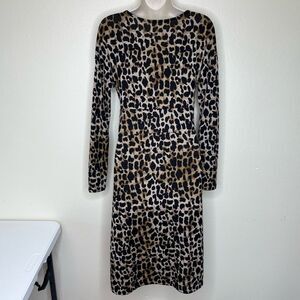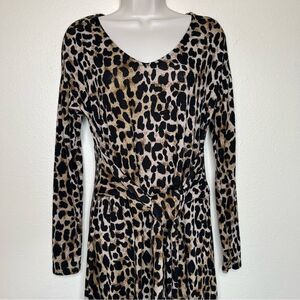 Reborn J Animal Print Front Tie Long Sleeve Scoop V Neck Dress Women Size Small