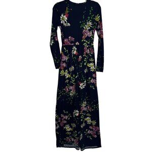 Reborn J Blue Floral Maxi Dress With Pockets Stretchy Bohemian Boho Garden Sz Sm