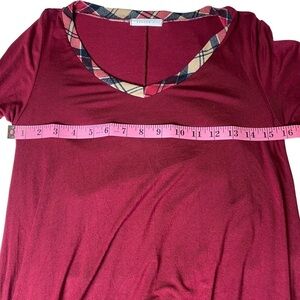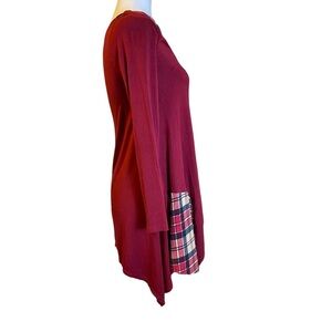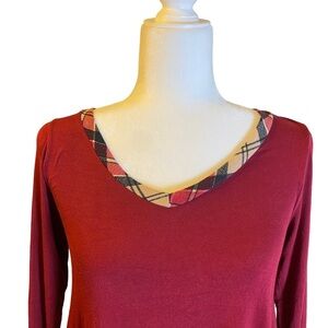 Reborn J Long Sleeve Deep Cranberry Plaid Detail V-neck Tunic Ladies Small