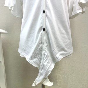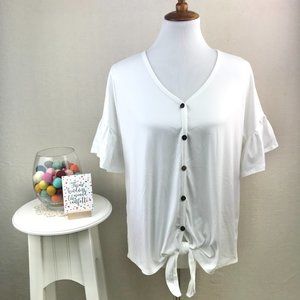 Reborn J White Button Up Tie Front Ruffle Short Sleeve Top