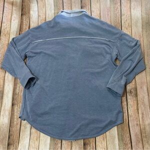 Reborn J Women’s Blue/Gray Top Button Top Long Sleeves Raw Hem Hem Accent Size L