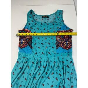 Reborn Paisley Print Midi Dress Teal Sleeveless Casual Boho Pocket M