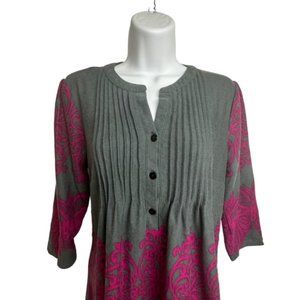 Reborn Pink and Gray Paisley Half Button Down Tunic Boutique