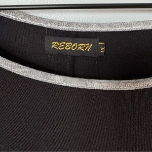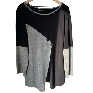 Reborn Plus Size Oversized Asymmetrical Tunic Top Sz 1X Black Gray 3/4 Sleeve