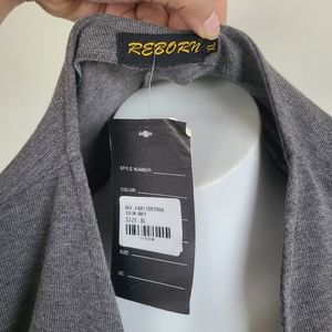 Grey 3 layer ruffle that starts at the waist. Fun bell sleeves! Great for around the office.