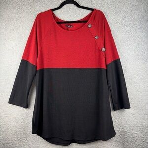 Reborn Sweater Womens 2XL Red Black Color Block Side Buttons Christmas Boho Office