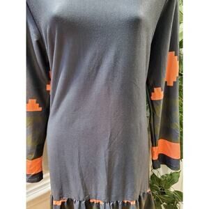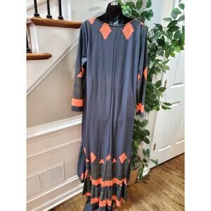 Reborn Women's Blue Rayon Round Neck Long Sleeve Hi Low Maxi Dress Size X-Large.