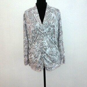 Rebound, White/black floral V-neck blouse, with gray glitters design
