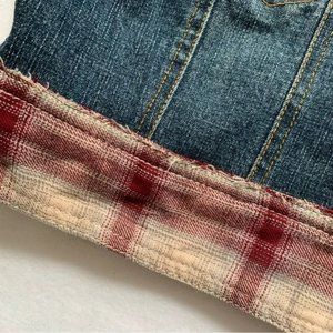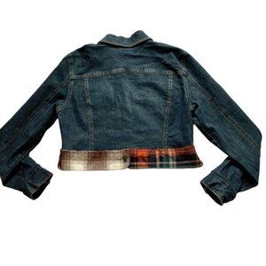 Rebuilt Custom Denim Jacket Medium Cropped Recycled Flannel Trim Handmade OOAK