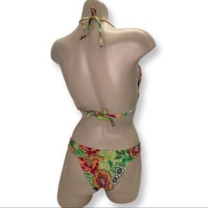 Brazilian Bright Floral Print Bikini Set. Bright Multi Flowers Design with light padding floral bikini top with bright floral print straps and floral design on cups and bright wide band floral bikini bottom. Sexy Tropical Bikini Set. Made in Brazil.