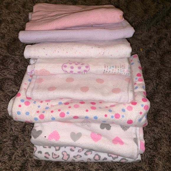 8 slightly used receiving blankets Some from Walmart others from Ross & a baby shower gift