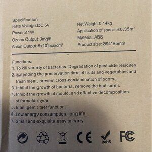 This innovative rechargeable mini air purifier effectively kills bacteria, reduces odors, and extends food preservation. It features a USB port for convenient charging and intelligent timer functionality.