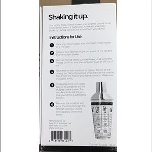 Recipe Cocktail Shaker Stainless Steel Glass Recipes Shaker 16 OZ NWT New In Box