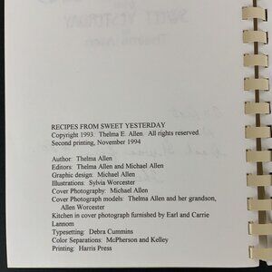 Recipes From Sweet Yesterday Cookbook Signed By Thelma Allen 1994 Spiral Bound