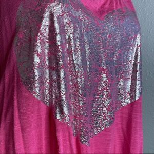 Reckless Hearts Sleeveless Top Pink With Metallic Silver Crackled Heart Medium