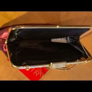 Reckon Flair Small makeup evening bag maroon gold chain zippered compartment New