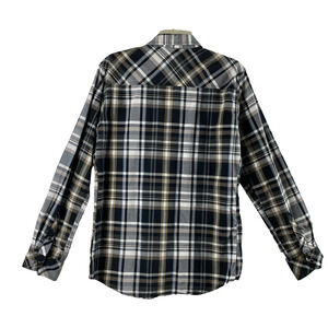Reclaim Shirt Mens Medium Black Brown Plaid Snap Up Pockets Western