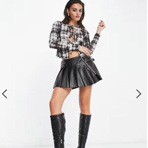 Style: Long sleeve, cropped top with a cut-out tie front and a round neck