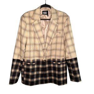 Reclaimed Vintage Two-Tone Beige & Black Plaid Blazer Jacket Unisex Size 42