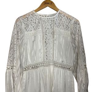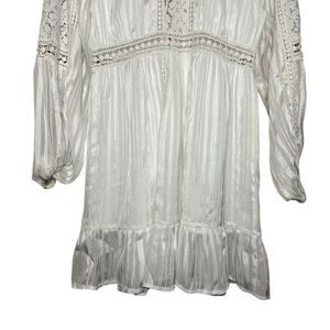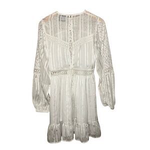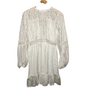 Reclaimed Vintage White Long Sleeve A-line Dress Size 6 Lace Ruffle Open Back