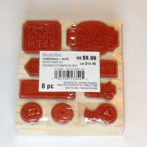 Recollections Christmas Noel Wood Stamp Set 8pc NWT. Perfect for the Crafter who likes to create their own holiday cards or labels. Contains 8 pc stamps.