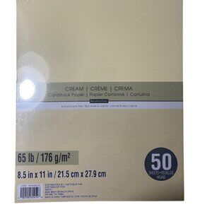 High-quality cream cardstock paper measuring 8.5" x 11". The 65 lb (176 g/m²) weight ensures durability for versatile crafting. Acid and lignin-free; includes 50 sheets per pack.