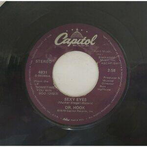 This 45 RPM vinyl record features Dr. Hook performing "Sexy Eyes" and "Help Me Mama". April Music, Inc./ Blackwood Music, Inc. ASCAP/ BMI. Producer & Musical Director Ron Haffkine. ℗ 1979 Capitol Records Inc. MFD. by Capitol Records, Inc. U.S.A.