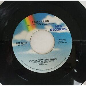 This 45 RPM 7" vinyl record features Olivia Newton-John performing "Silvery Rain" and "Tied Up". MCA-52155 MC 12098. Blue Gum Music, Inc/ ASCAP. Produced by John Farrar. ℗1981 MCA Records, Inc. ©1980 MCA Records, Inc. MFD. by MCA Records, INC., 70 Universal Plaza, Universal City, Calif 91608. Original Picture Sleeve is NOT Included- See Photos Please