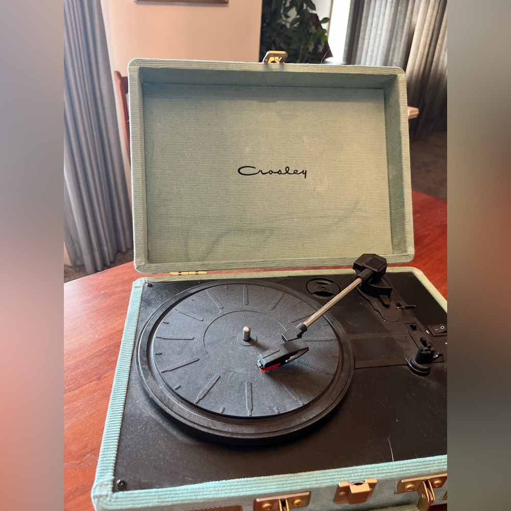 Teal suede record player. Make offers!
