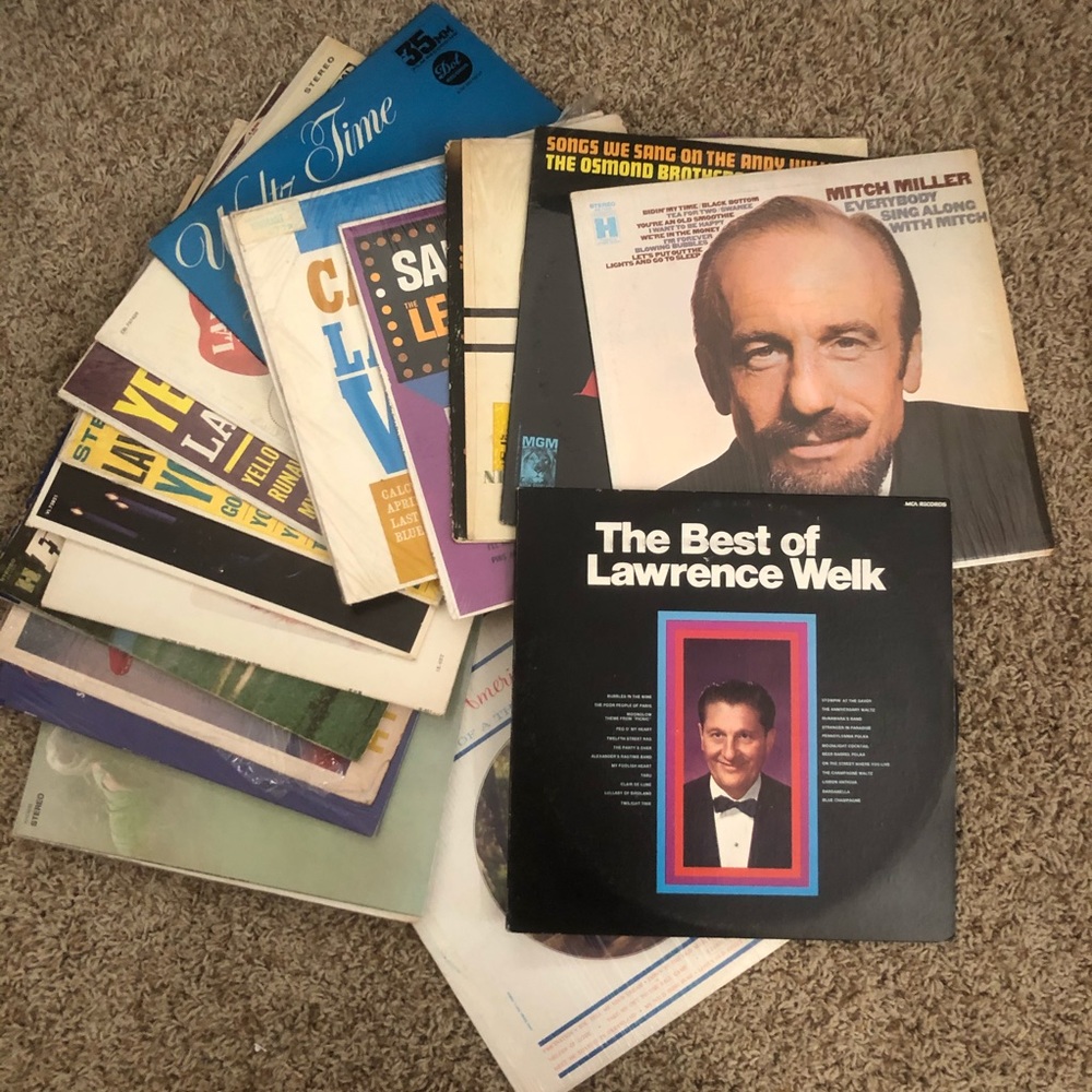 Handful of records! Amazing for wall decor, for all you music lovers! Or even just to play in your record player! All such good condition. Variety of tracks! (22 to be exact) ! 💛