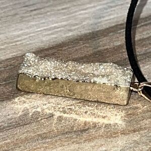 Rectangle Druzy Genuine Crystal Quartz Pendant Necklace Gold Tone On Cord NWOT