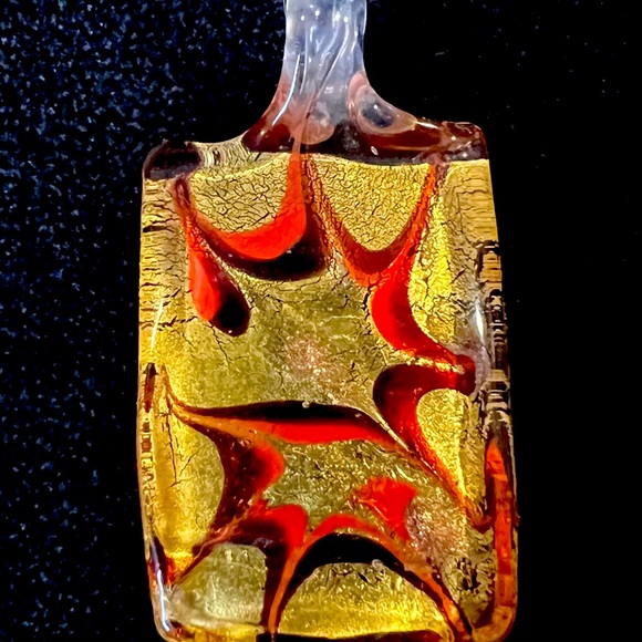 Beautiful glass pendant in gold and red. Unique and can be worn with just about anything! Pendant only
