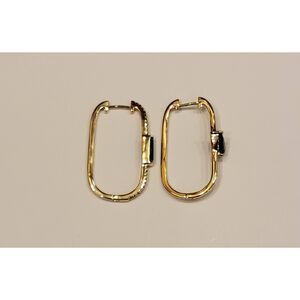 Rectangle Hoop Earrings 14K Gold Plated Sterling Silver Cubic Zirconia