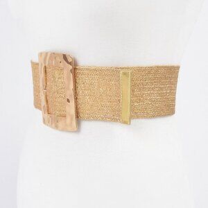 Rectangle Metal Buckle Stretch Plussize Straw Belt