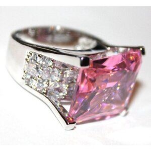 Rectangle Pink Tourmaline Ice Cz Chunky Cubic Zirconia Glam Cocktail Ring Size 9
