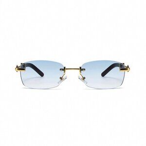 Rectangle Rimless Gold Frame Baby Blue Tint Retro 90s Vintage Hip Hop Sunglasses