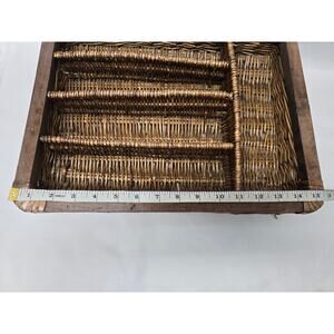 Rectangle Wicker Silverware Tray Organizer 5 Compartments Utensil Holder Spoon. Does have signs of ware and some of the bottom is broken as shown.