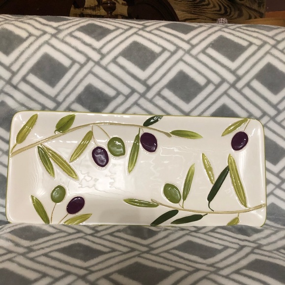 Serving dish with olives drawn on it