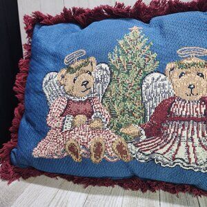 Rectangular Angel Bears & Christmas Tree Design Pillow 10 x 12 Decorative
