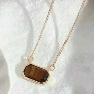 Rectangular Brown Stone Necklace: Elegant Brown Stone Pendant in Gold-Tone Setting. Simple and Sophisticated Design.