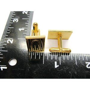 Unbranded gold tone cufflinks lend a vintage touch to any dress suit or tux shirt. These rectangular-shaped cufflinks are engravable, adding a personal touch to your formal wear.