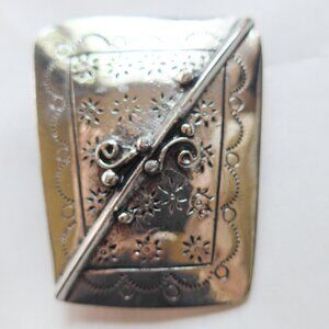 Preowned/Used. Condition is very good. This is silver toned costume jewelry. It does not come with the bolo tie cord. Height is two inches and length is one and a half inches.