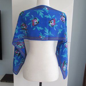 Rectangular Floral Pattern Scarf 10" x 52" Made in Italy, Blue, Purple, Black