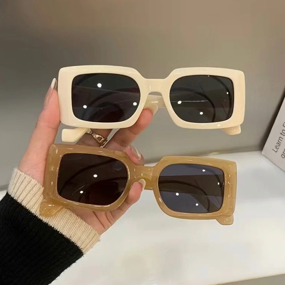 Vintage-Inspired Rectangular Frame Polarized Sunglasses for Women - Classic Solid Color