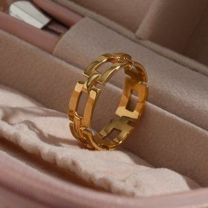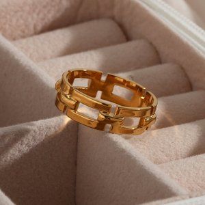 Rectangular Geometric Chain 18K Gold Plated Stainless Steel Ring
