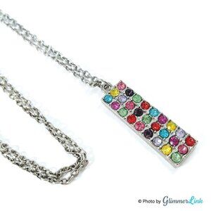 Rectangular Multi Color Rhinestone Crystals Pendant Necklace