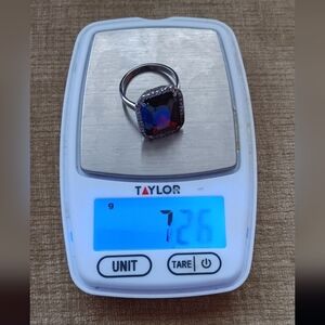 Rectangular Multi Faceted Deep Red Glass Silver Ring