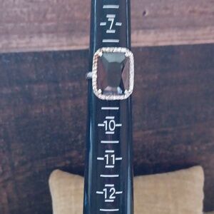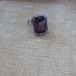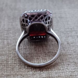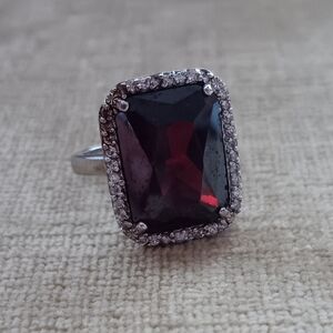 Rectangular Multi Faceted Deep Red Glass Silver Ring